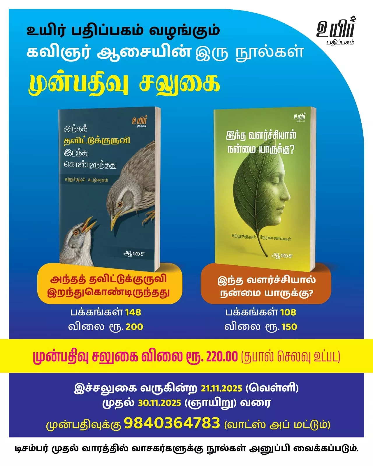 முகப்பு வெளியீடு உயிர் பதிப்பகத்தின் முன்பதிவு சலுகை உயிர் பதிப்பகத்தின் முன்பதிவு சலுகை உயிர் பதிப்பகத்தின் முன்பதிவு சலுகை By சாகுல் அமீது 21 November 2025 முன் பதிவு செய்ய கடைசி நாள்: 30/11/2025